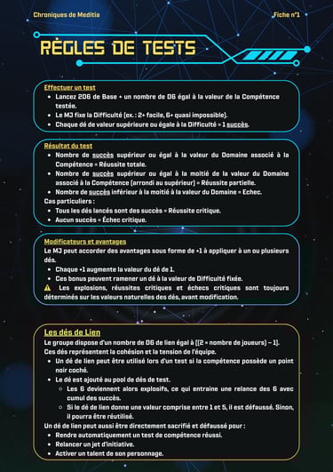 Dans Chroniques de Meditia, chaque action importante — qu’il s’agisse de convaincre un seigneur, de tirer avec un fusil ou de percer un secret ancien — passe par un test de dés.
