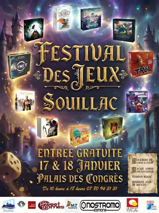 Les 17 et 18 janvier, Chroniques de Meditia sera présent au Festival du Jeu de Souillac pour proposer des parties de démonstration du jeu de rôle.